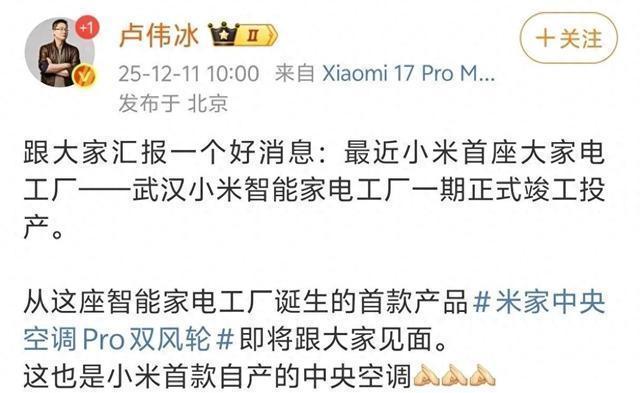 武汉小米智能家电工厂总投资25亿元,是继小米手机智能工厂、汽车超级工厂后,小米“人车家全生态”战略下的第三座大型智能制造基地。一期于今年10月底投产,依托自研澎湃智能制造平台,实现关键产线100%自动化,产品一次性合格率超99%,每6.5秒即可下线一台高端空调。关键零部件100%AI质检,制造公差控制在±0.05mm,经漠河极端环境验证,尽显国家级智能制造标杆实力。此次发布自研自产产品,标志着工厂已实现量产落地。