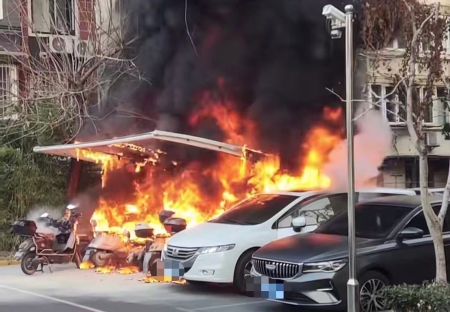 接到报警后,消防部门赶赴事发小区灭火。经扑救,明火被扑灭。火灾造成现场多辆非机动车烧毁,一辆机动车烧损,起火区域一片狼藉。所幸火灾未造成人员伤亡。