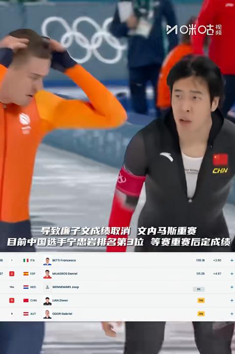 廉子文被取消成绩 非有意阻碍荷兰选手