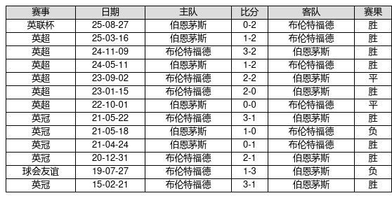 布伦特福德 VS 伯恩茅斯两队近10年的交战次数为13场,布伦特福德9胜2平2负,赢球概率为69.2%,平局概率为15.4%,输球概率为15.4%。