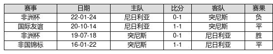 尼日利亚 VS 突尼斯两队近10年的交战次数为4场,尼日利亚1胜2平1负,赢球概率为25.0%,平局概率为50.0%,输球概率为25.0%。